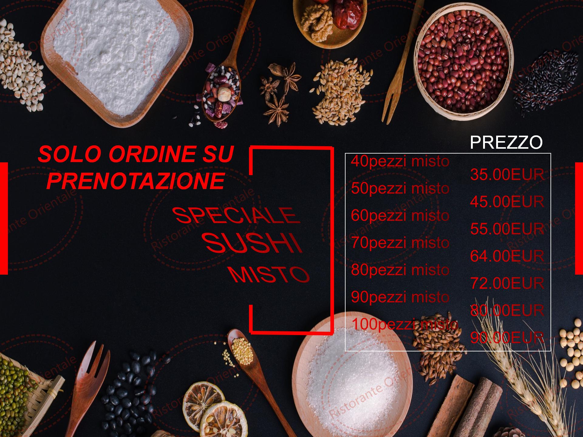 Il Ristorate Orientale di Cosenza ti propone un ricco menu di cucina orientale con prelibatezze di prima scelta della tradizione culinaria cinese e giapponese. Maestri cuochi, cucinano con amore e passione piatti sia a base di carne e pesce, sia a base di verdure. Ѐ anche possibile richiedere piatti interamente vegetariani o portate per bambini. Le proposte del menù comprendono sushi di ogni genere, con ampie porzioni, una ricca proposta di piatti di pesce e tempure ben fritte, involtini primavera, riso alla cantonese, riso con gamberi, fritti di pollo e maiale, carni e pesci alla piastra e il classico ed intramontabile gelato fritto.